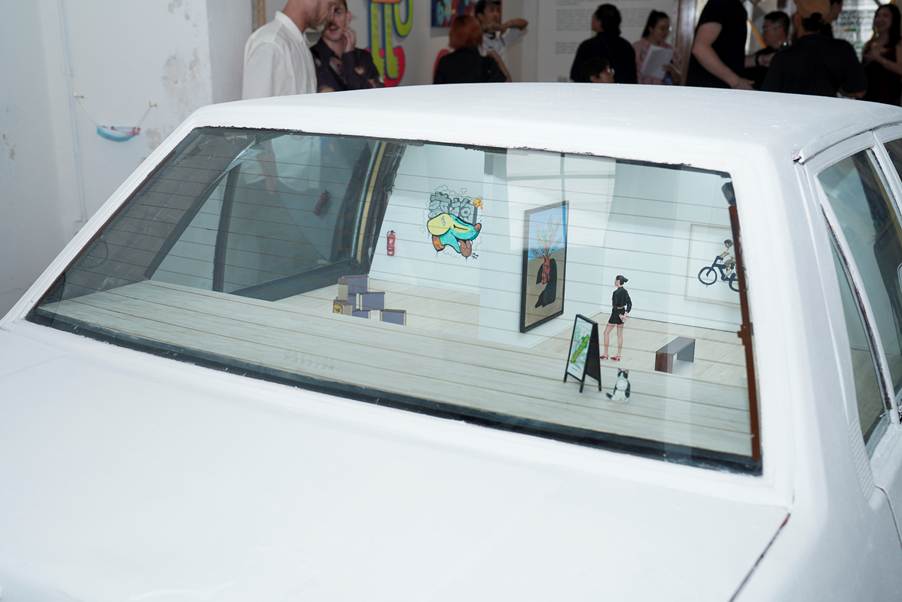 Perhaps the most ingenious element of Subculture is its spatial subversion: a fully realized miniature gallery built inside a physical car.