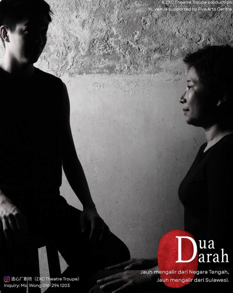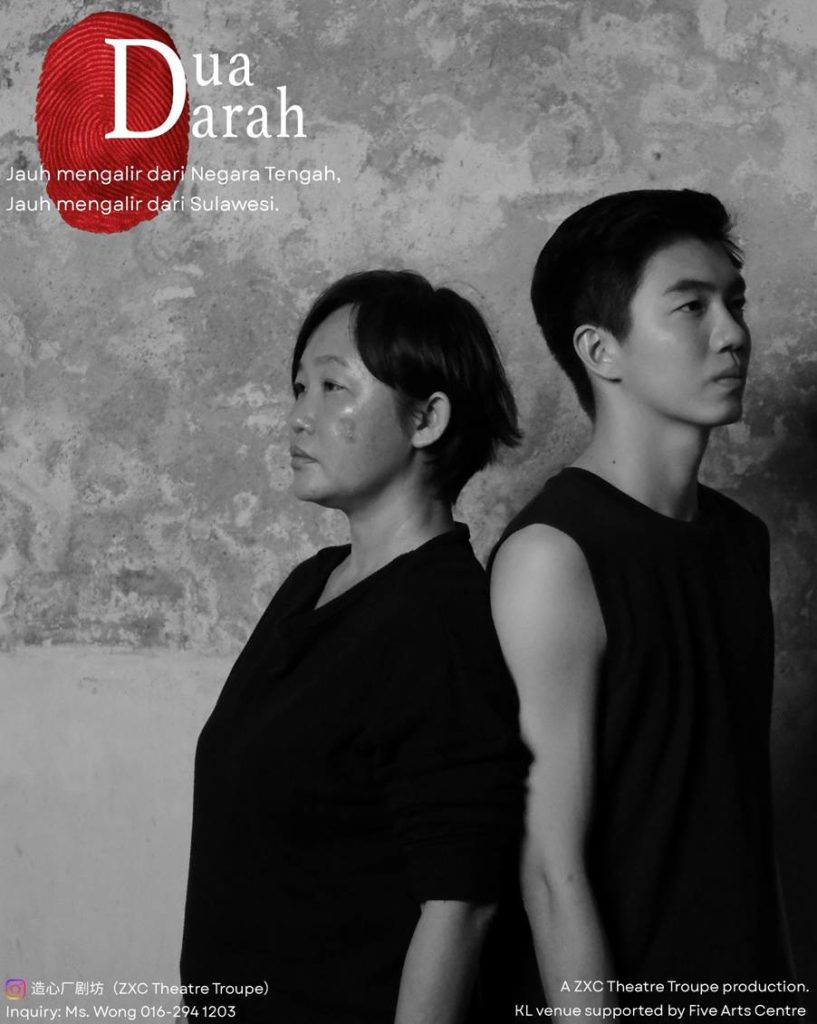 Pencarian yang mendalam ini diangkat dengan cemerlang menerusi Dua Darah, sebuah drama berbahasa Melayu baharu hasil nukilan penulis skrip Johan Othman, dengan arahan pengarah berkaliber, Chee Sek Thim. Diterbitkan oleh kumpulan teater veteran dari Pulau Pinang, ZXC Theatre Troupe, pementasan ini akan menemui penonton di Pulau Pinang sebelum dipentaskan di Five Arts Centre, Kuala Lumpur.